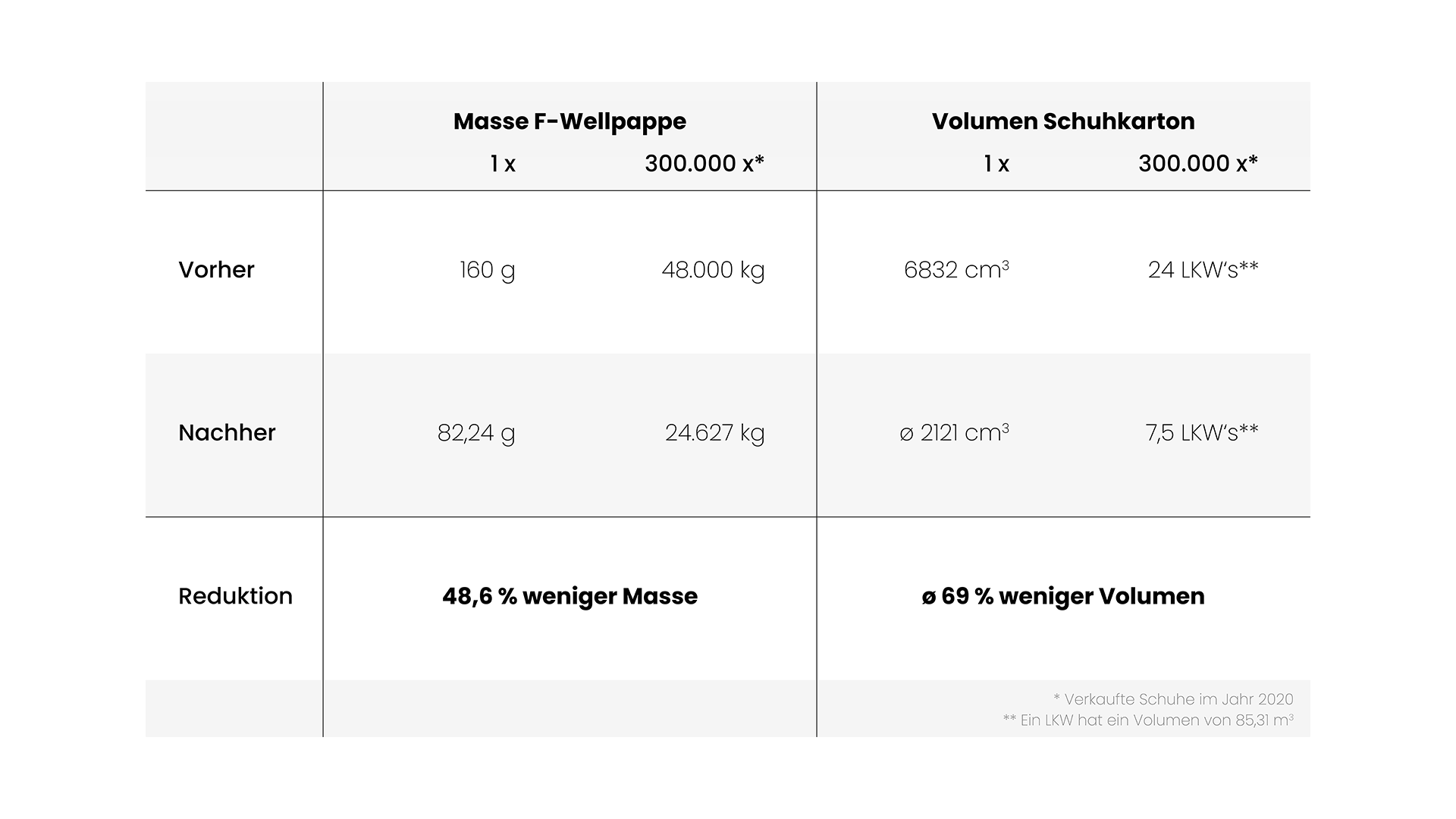 Der kleine Fuchsbau spart sowohl 49 % der Ressourcen als auch 60 bis 78 % des Volumen. Für Logistik und Lagerung wird nur noch ein Drittel der Fläche benötigt.