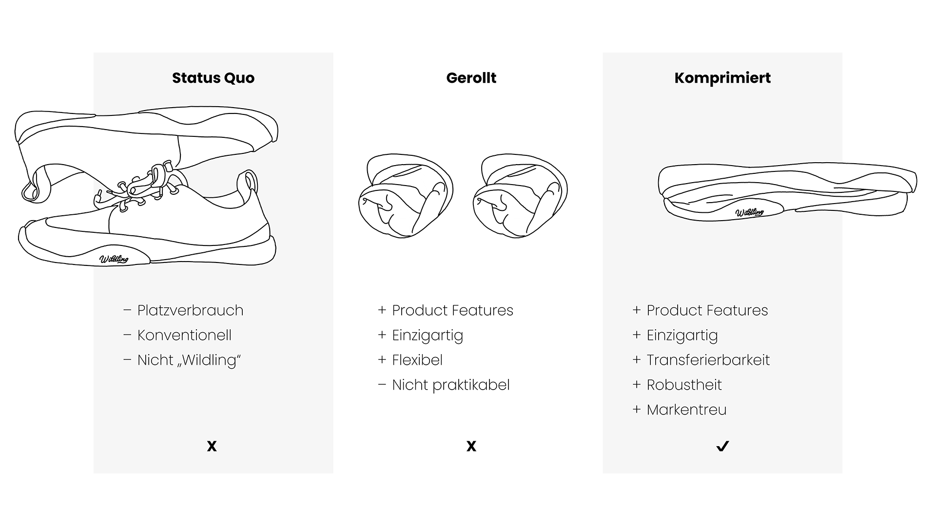 Für Wildling sollte eine nachhaltige Verpackung gestaltet werden, die sowohl Ressourcen spart als auch die Markenidentität vermittelt.