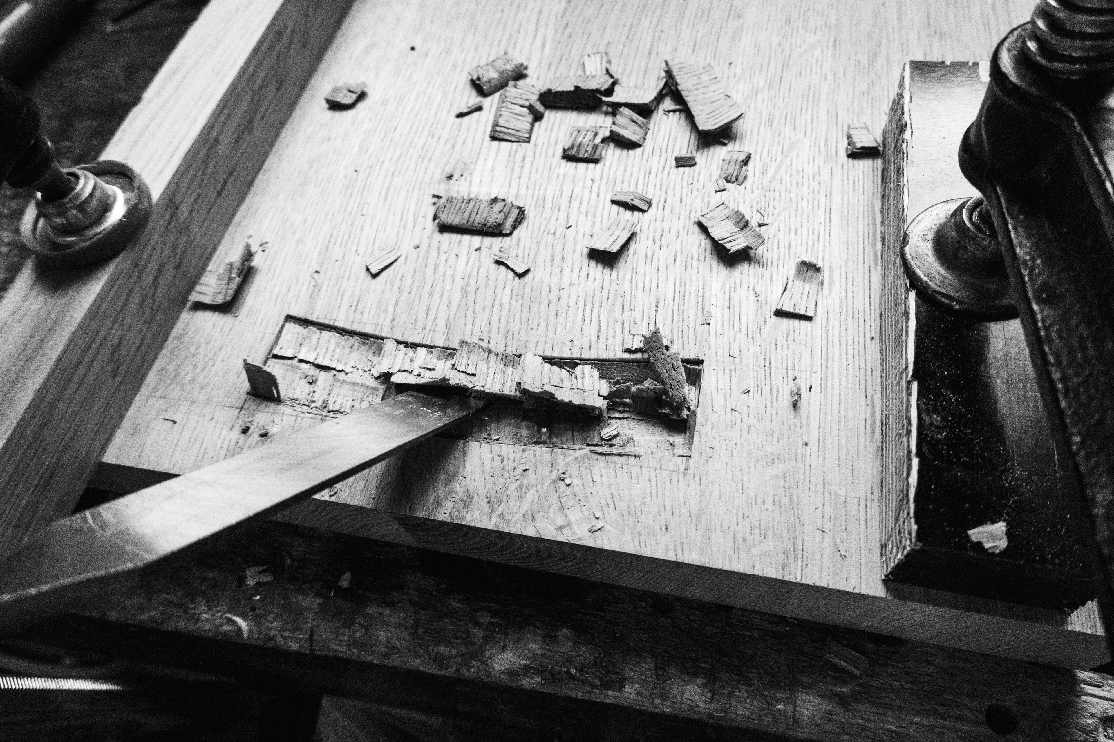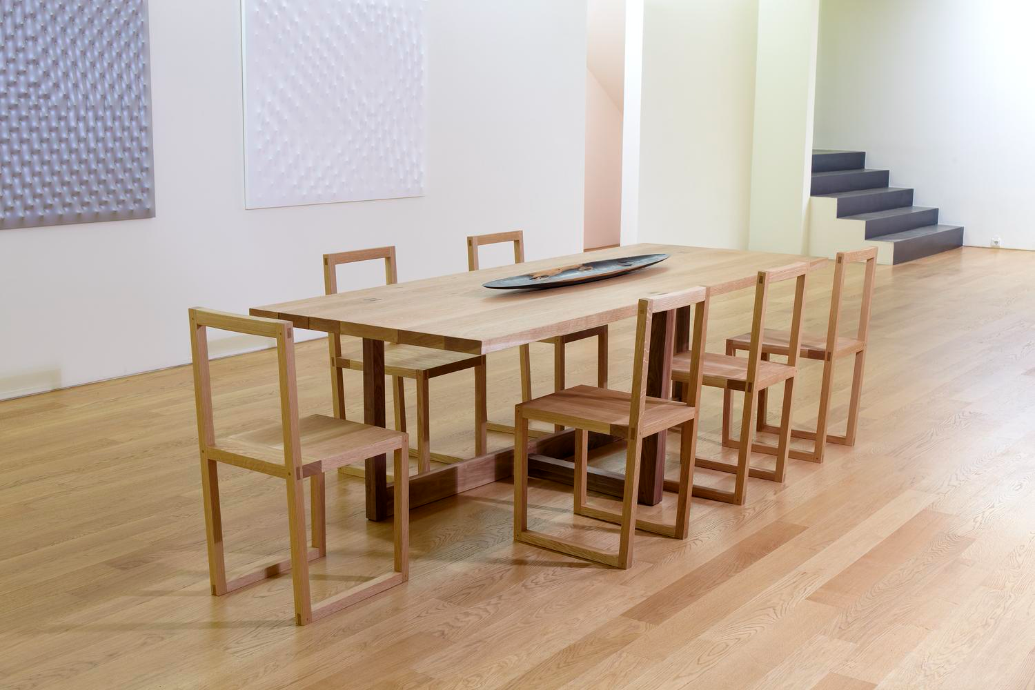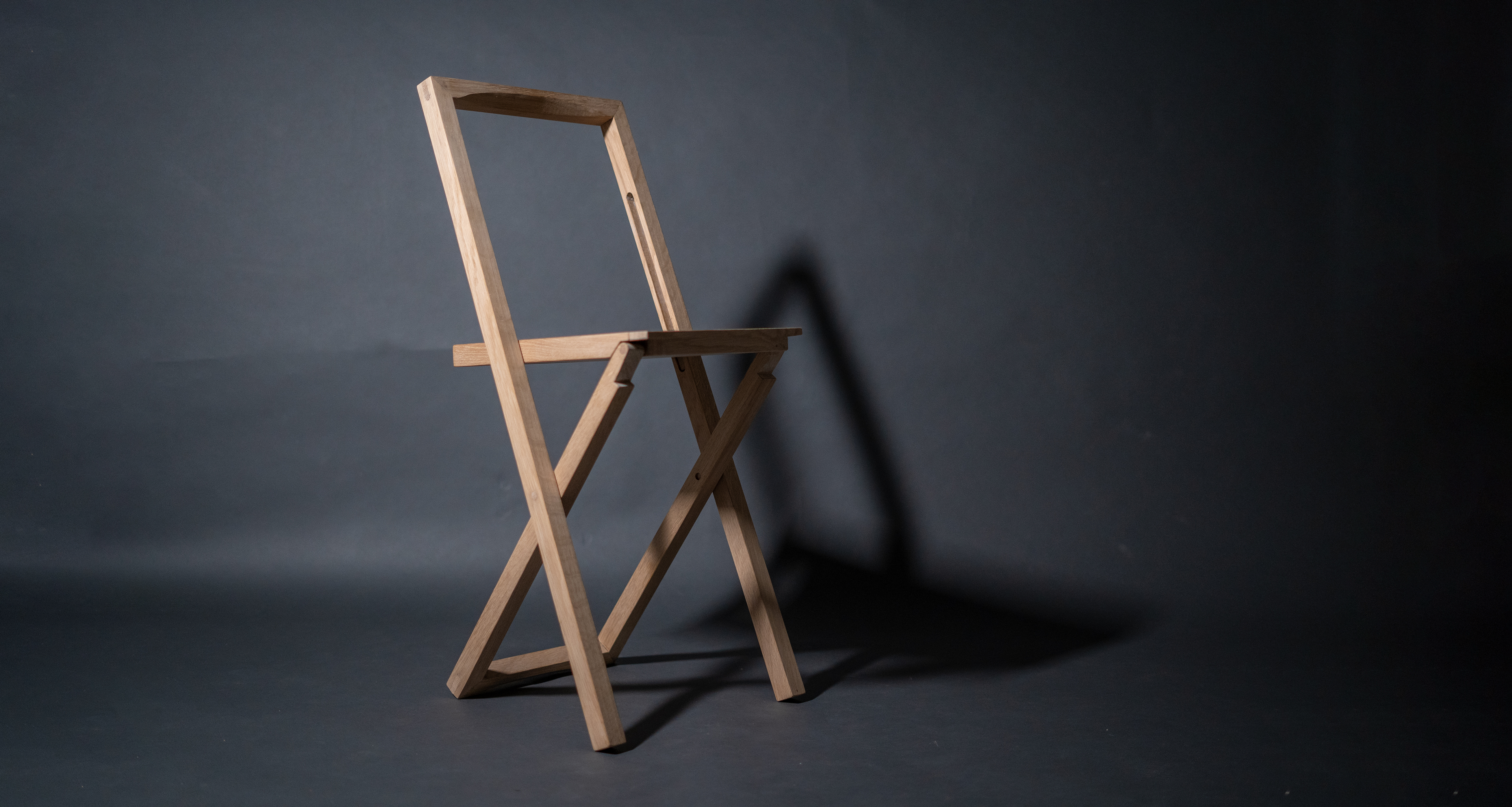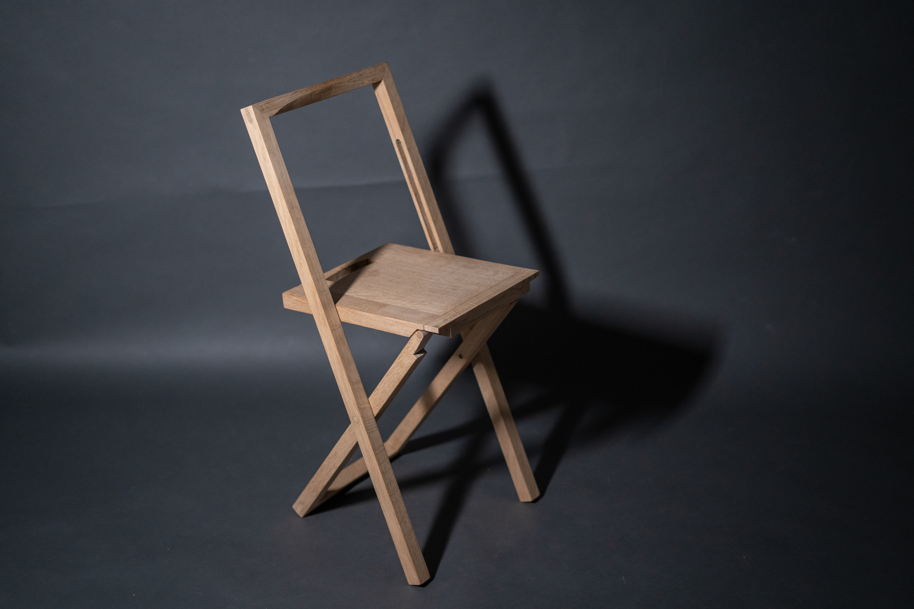Für die Interviews ist ein flexibler und drei Zentimeter flacher Klappstuhl entstanden. Das Material, 100% regionale Eiche, repräsentiert die Ressourcenlandschaft und das Handwerk der Region.